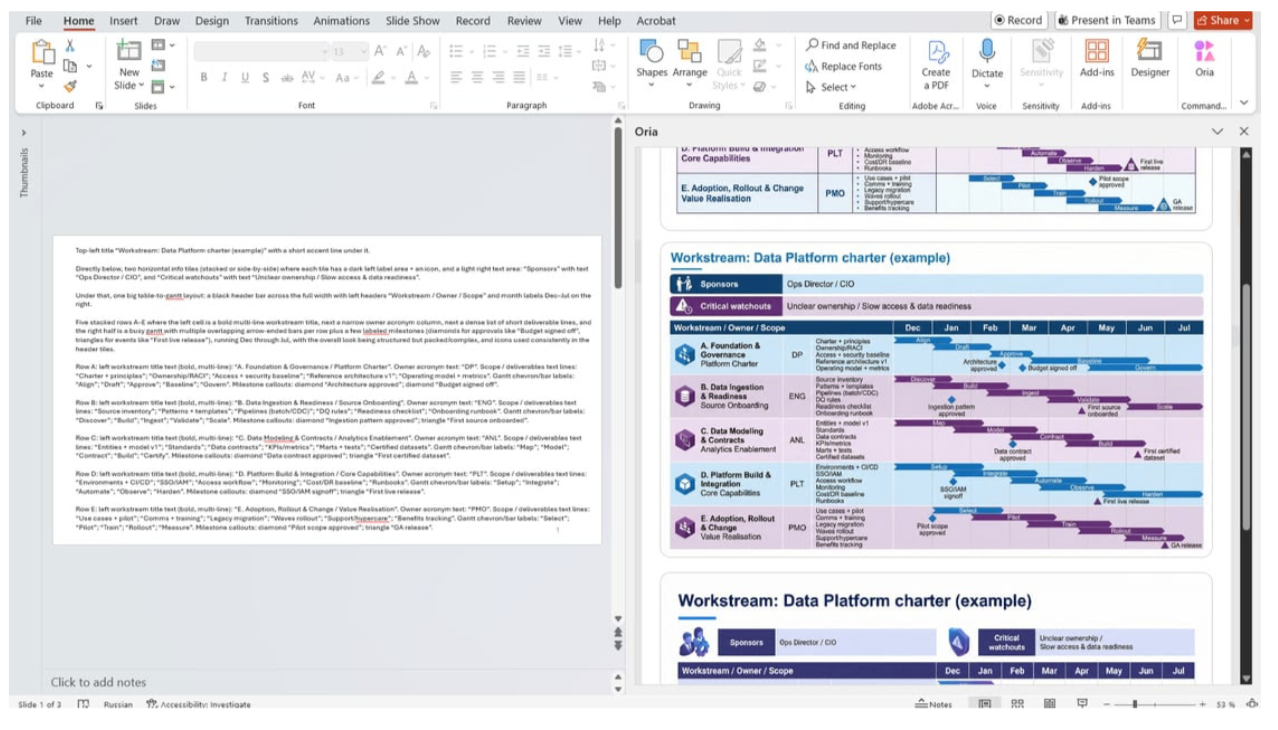 Oria is evolving every day, and we want to share a few features we added recently that map directly to everyday slide work. From faster generation to voice control, each update is designed to keep you in the flow and out of the weeds.